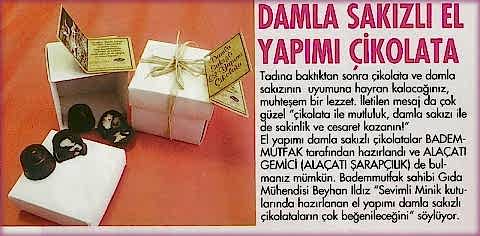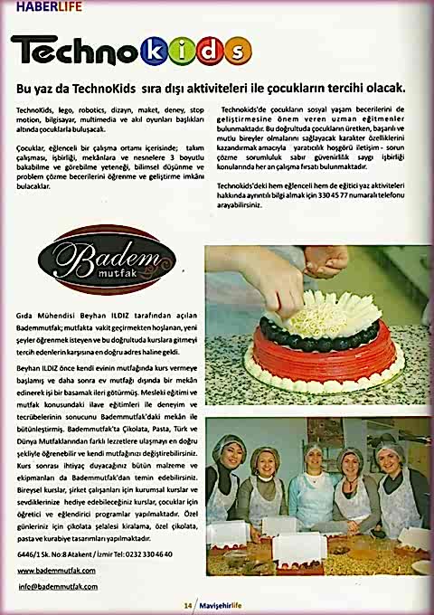 25 Eylül 2017 PazartesiLezzetli çikolatalar yapmaya ne dersiniz?Evde çikolata yapımı kursu 7'den 70'e herkesin büyük beğenisini topluyor. 25 Eylül 2017 PazartesiDiva'nın Gelin Adaylarına Bademmutfak'tan JestDiva dergisi çalışanları, derginin görsel yönetmeni Sinem Ok ve derginin... 25 Eylül 2017 PazartesiMutfak Sırlarını Öğreninİki senedir hizmet veren bu yemek okulunda özellikle çikolata ve pasta... 25 Eylül 2017 PazartesiÇikolata tadında oyuncakAşçıları aratmayan minikler farklı bir gün geçirmenin keyfini yaşadı. 25 Eylül 2017 PazartesiDamla Sakızlı El Yapımı ÇikolataTadına baktıktan sonra çikolata ve damla sakızının... 25 Eylül 2017 Pazartesi23 NİSAN ÇOCUKLARA BAYRAM GELECEĞİN BÜYÜKLERİ MUTFAKTAHürriyet Gazetesi 25 Eylül 2017 PazartesiÇALIŞAN ELLER 'BADEMMUTFAK'TA BULUŞUYORYaz biterken hayatının rutin ve yorucu temposundan... 25 Eylül 2017 PazartesiBABALAR BADEMMUTFAK'TA HATIRLAMALIBademmutfak'ta her yaşa özel farklı programların bulunduğu... 25 Eylül 2017 PazartesiMutfak severlerin İzmir'deki adresi7'den 70'e lezzet tutkunları 25 Eylül 2017 PazartesiÜniversiteli pastacılar hazırİzmir Ekonomi Üniversitesi'nin düzenlediği Aşçılık Sertifika Programı... 25 Eylül 2017 PazartesiVahe Kılıçarslan Bademmutfak pastalarını çok sevdiVahe Kılıçarslan Bademmutfak'ı ziyarete geldi. 25 Eylül 2017 PazartesiAşçılık okullarında mutfağın şifreleri çözülüyorMutfakta gayet iyiyseniz ve sadece yeni tatlar... 25 Eylül 2017 PazartesiHaberlife BademmutfakGıda Mühendisi Beyhan Ildız tarafından açılan Bademmutfak... 25 Eylül 2017 PazartesiOÇEM'de Çikolata Tadında Bir GünMavişehir Rotary Kulübü ve Bademmutfak iş birliği ile gerçekleştirilen... 7 Ocak 2017 CumartesiTRT-1 Canlı Radyo Yayını99.1 TRT-1 Kent Radyo İzmir'de canlı radyo programına katılan... 1